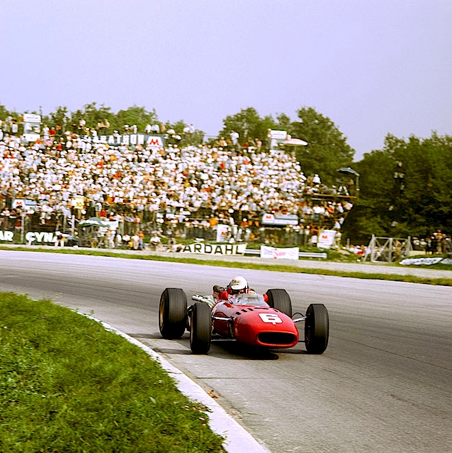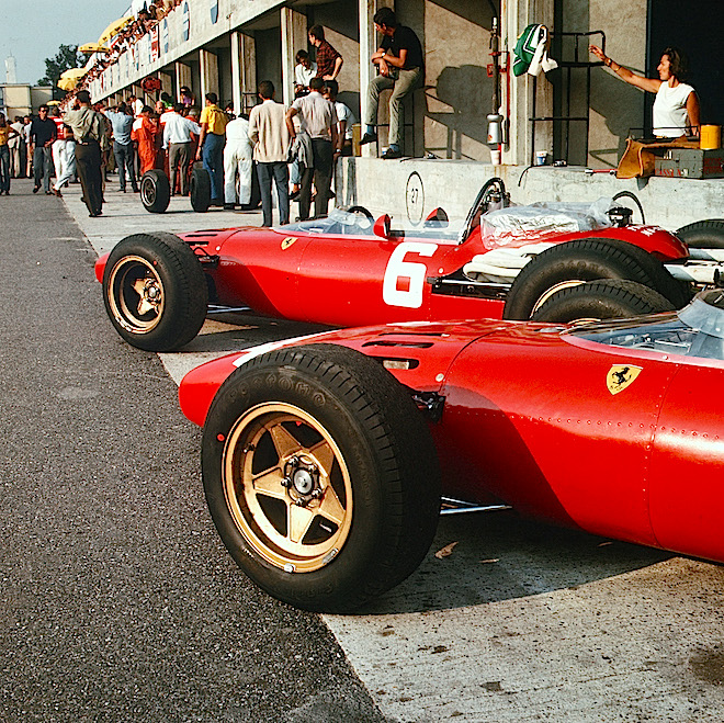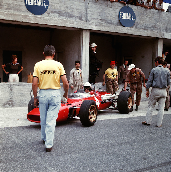 The beautiful Ferrari 312s of Ludovico Scarfiotti and Mike Parkes line up in pit lane before the start of practice. Parkes (BELOW) was underrated by many, but not by Scuderia Ferrari, who regarded him as a genius test driver. He took pole, but ultimately missed out on victory by just six seconds to his Italian teammate Scarfiotti (BOTTOM). "Lulu" was better known as a sportscar racer, and had shared the winning Ferrari at Le Mans in 1963 with compatriot Lorenzo Bandini, the winning Ferrari at Nurburgring 1000km with John Surtees in ’65, and was second in that glorious Ferrari 1-2-3 at the 1967 Daytona 24 Hours. Victory here at Monza would be his only F1 triumph, but not a bad one for an Italian to achieve…