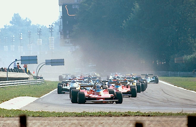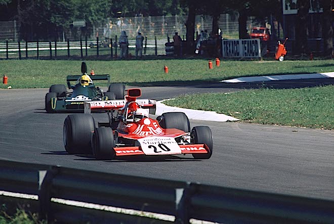 Remember we mentioned strange things happen at Monza? Ronnie Peterson was a prime example. In 1971, he finished second to a guy who, as we mentioned, never led a complete lap of a grand prix. In ’73, he won, just ahead of his teammate Emerson Fittipaldi, thereby ensuring the title went not to Emmo but to Tyrrell's Jackie Stewart. In ’74, Peterson won again, just ahead of Fittipaldi (ABOVE) who by now was at McLaren and heading for World Championship No. 2. In ’76, he won again…this time for low-budget March. And in ’78, it was Monza where he crashed, leading to the urgent operation which ultimately cost him his life.