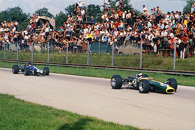 Jimmy Clark was leading the Italian Grand Prix comfortably in his Lotus 49 Ford-Cosworth, when on the 12th lap, he suffered a puncture and lost a lap. He caught the back of the field and carved his way through to the front to unlap himself, generously towing new leader, his teammate Graham Hill, clear of the chasing pack. Clark then disappeared up the road…only to reappear in their mirrors. He'd made up a whole lap and, had sliced his way back into the lead by lap 60! Sadly, on the final lap, the Lotus's fuel pump failed to pick up the last dregs of fuel, allowing the battling John Surtees (Honda) and Jack Brabham (Brabham) ahead. Surtees crossed the line first with Brabham right behind him. But there has never been a greater third place in Formula 1 history.