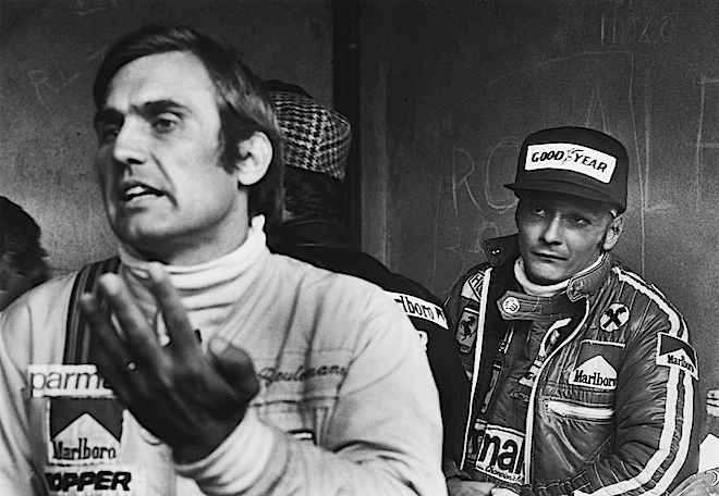 If anyone can explain how a guy given his last rites 33 days earlier and still in agony from severe burns to both his face and his lungs can get back into a Formula 1 car and perform so strongly, that person can only be Niki Lauda. In practice he got nervous when it first started raining – who knows? maybe delayed shock. But then he got his head in gear, and drove fast enough to eclipse his two teammates in qualifying. Two? Yeah, Ferrari had hired Carlos Reutemann (who'd partner Lauda full-time in ’77) for the weekend as a back-up, should Lauda not be back to his best. Niki's enthusiasm for the idea is written all over his wounded face (BELOW). Although Regazzoni, his other teammate, got ahead of him on race day and finished second, Lauda's fourth place was as brave a drive as anyone had seen, and he finished five places and almost 40sec ahead of Reutemann…