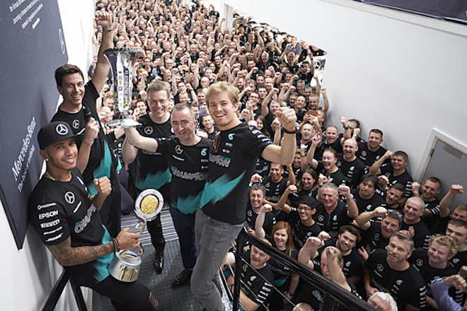 "I've seen this team grow since the start of the Silver Arrows project in 2010 and the level we've got to now, all working together, is unbelievable," said Rosberg. "There were some really tough years at the start but we are now the big team of Formula 1 - dominating the sport and breaking records along the way. When people think of F1 throughout history, it's only a handful of teams like McLaren in the 80s, Williams in the 90s and Ferrari in the 2000s that come to mind - and we are now making our own mark on that list."