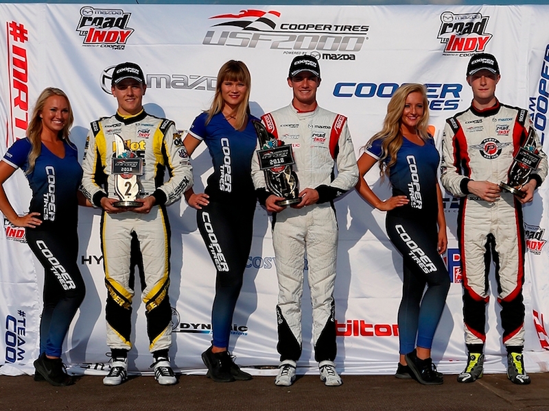 Kirkwood took full advantage of the fact his team had tested its Tatuus-Mazda USF-17 on the challenging 0.686-mile oval last year in the hands of close friend and 2017 series champion Oliver Askew. The points leader with two wins already under his belt this season, Kirkwood qualified on the pole with a two-lap average of 98.505mph.