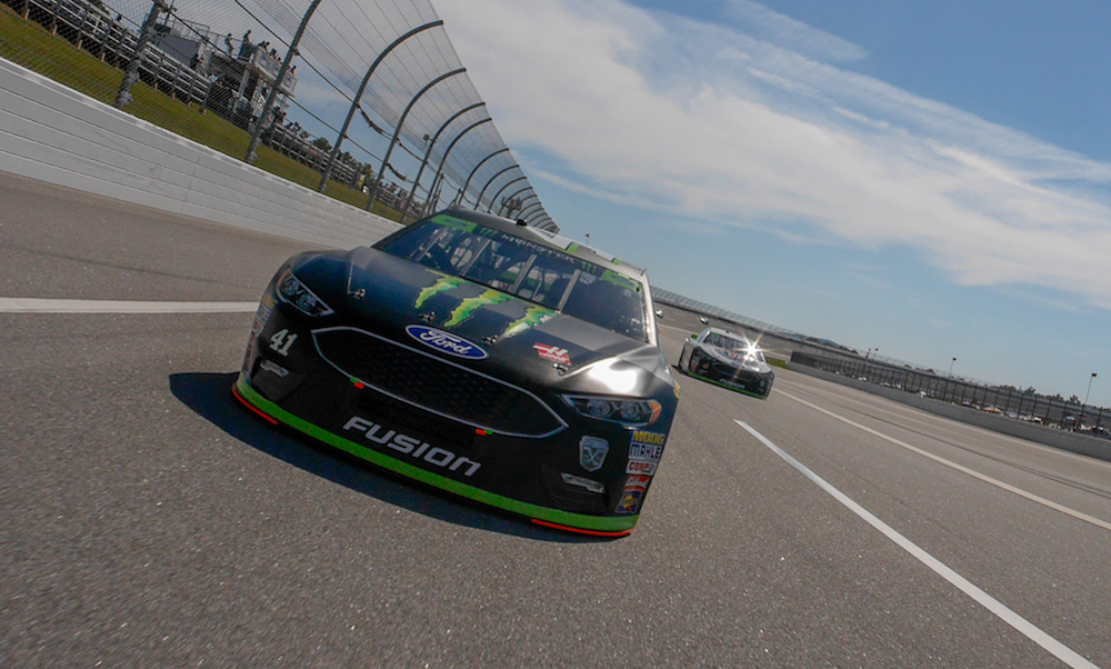 The second issue was the final-lap accident in Turn 1. After Busch took the white flag with Stewart-Haas Racing teammates Aric Almirola and Clint Bowyer chasing him, followed by Ricky Stenhouse Jr., Joey Logano, and Paul Menard, a crash broke out involving Matt DiBenedetto, Kyle Busch, and Chase Elliott.