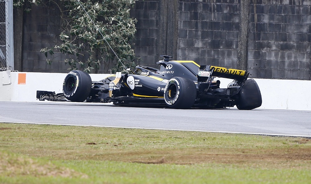 The Renault driver ran wide exiting Juncao — the final proper corner on the circuit at Interlagos — and ended up on the grass. From there he slid sideways into the barrier at relatively high speed, doing significant damage to the whole right-hand side of his car. Having caused a red flag and ended his running after six laps, Hulkenberg says a small mistake had big consequences.