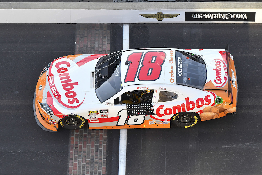 With a strong short-run car, combined with his unquestioned prowess on restarts, Busch took control after the final restart to win for the fourth time at the Brickyard, the fourth time in seven starts this season, and the 96th time in his career, extending his series record.