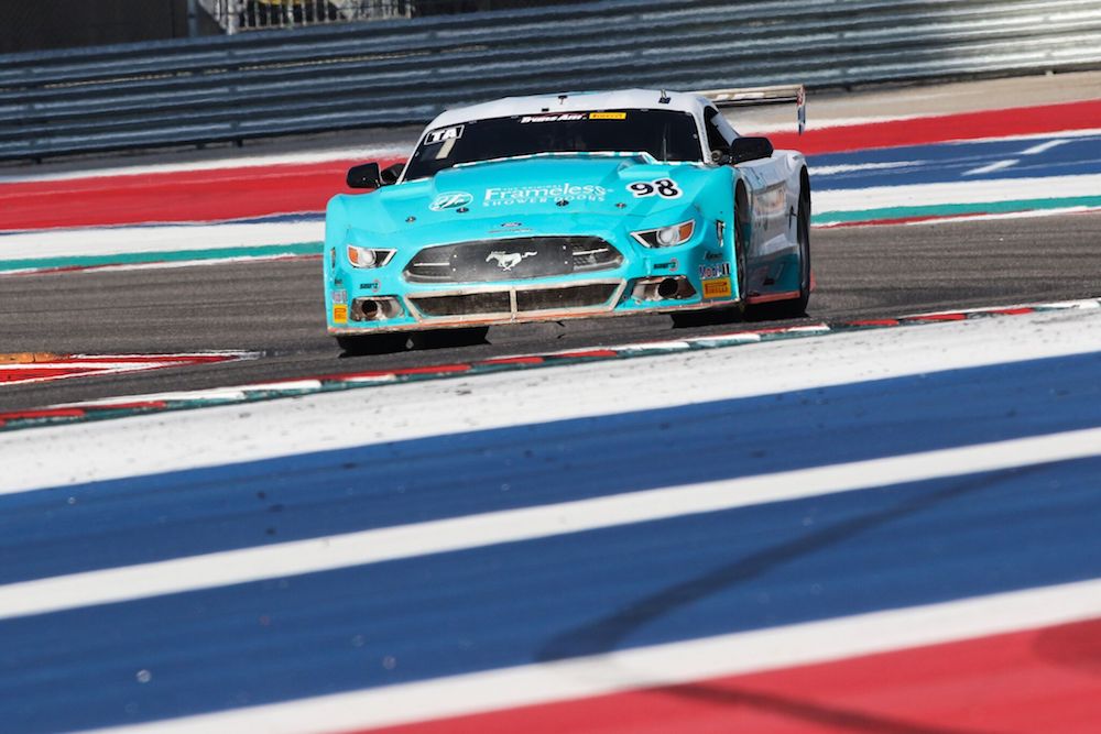 Wheeling his baby blue No. 98 Frameless Shower Doors Ford Mustang, Francis Jr. was the only driver in the 2:07s on the 20-turn, 3.426-mile circuit, ending up with a fast lap of 2m07.991s. That flying lap earned the defending TA champion an extra three points toward the season-long championship battle, furthering his lead over second-place Chris Dyson (No. 20 Plaid Ford Mustang).