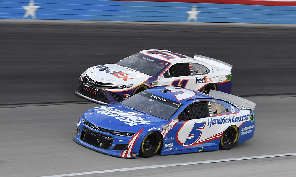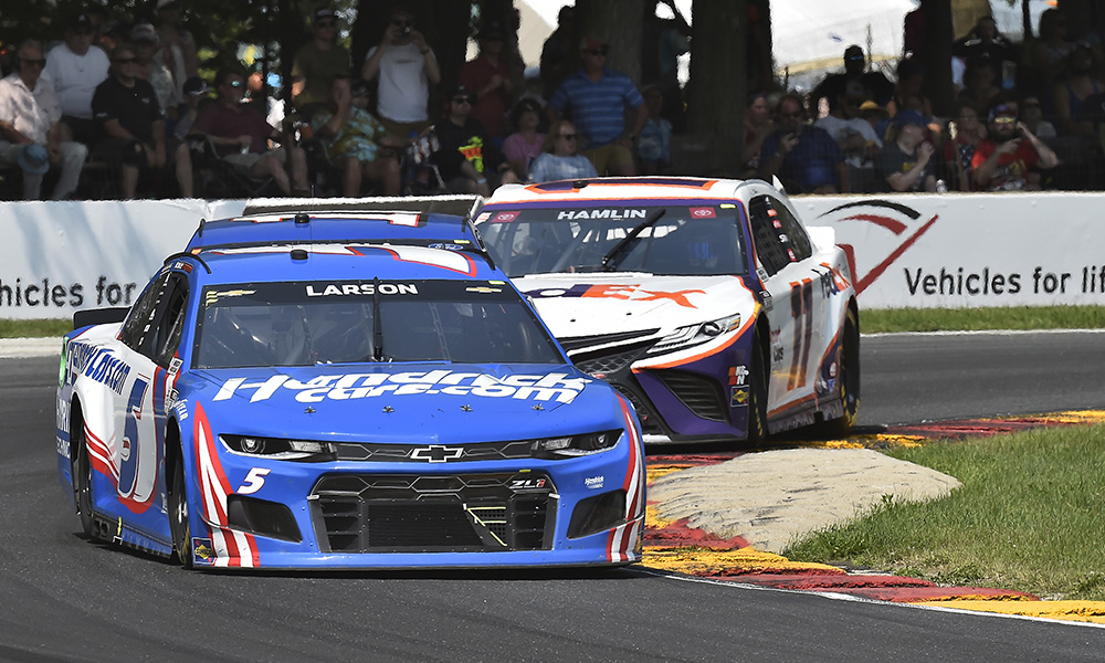 Larson (No. 5 Chevrolet) could have potentially left Road America with the regular-season championship lead over Hamlin (No. 11 Toyota) if not for a late spin as a result of contact from Hendrick Motorsports teammate Alex Bowman (not pictured). Harrelson/Motorsport Images)