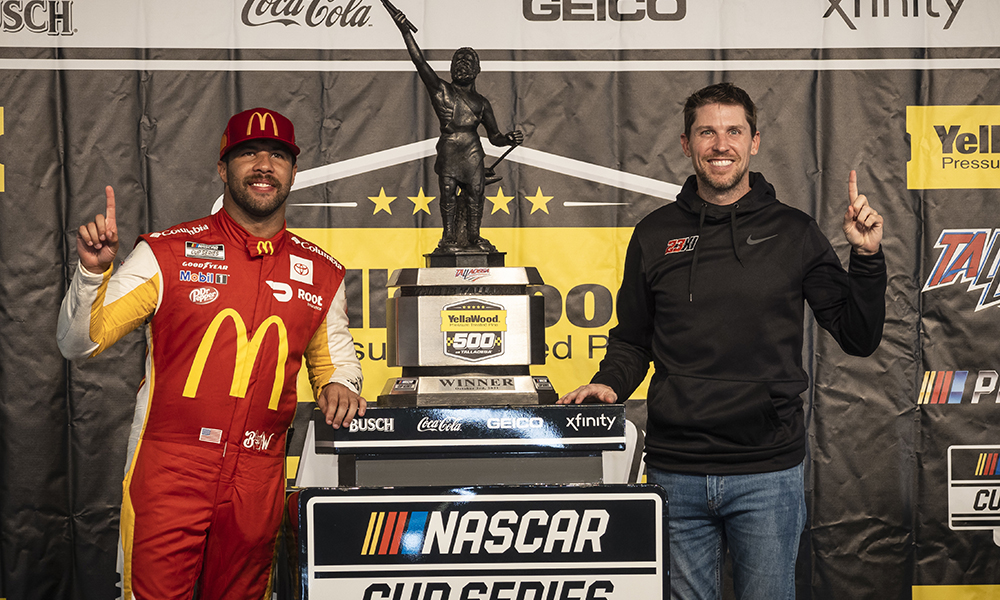 Aside from the wins, it could be argued that Hamlin’s barely been mentioned. There’s been no need to, because there’s been plenty to follow with other playoff drivers fighting for their postseason lives or with each other. Hamlin’s driver and team, Bubba Wallace and 23XI Racing, was the center of attention after a big day at Talladega.