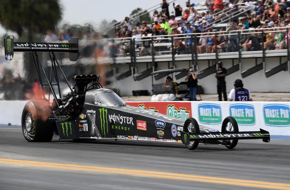 Force (pictured above) powered to the top with a run of 3.661s at 333.91mph in the final qualifying session, giving her 33 career No. 1 qualifiers in her 11,000-horsepower Monster Energy dragster. She drove to 12 No. 1 positions a year ago and is now seeking her first career Winternationals victory as she looks to begin the 2022 campaign on an impressive note. Force will take on Ron August in the first round of eliminations on Sunday.