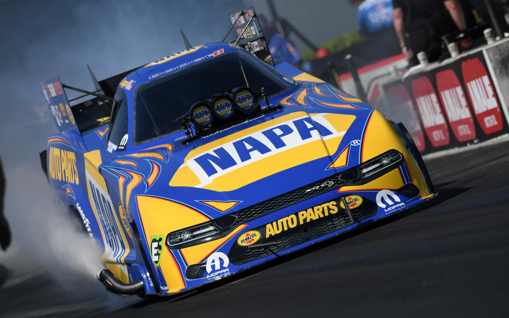 Capps (pictured above), the reigning Funny Car world champ, closed out qualifying with an outstanding performance, slipping past Robert Hight with his run of 3.857s at 332.43mph in his 11,000-horsepower NAPA Auto Parts Funny Car. After moving into a team ownership role for the first time and forming Ron Capps Motorsports in the off-season, it was also an ideal start for the veteran. In a thrilling, must-see first-round matchup to open eliminations, Capps will take on longtime rival and 16-time world champ John Force.