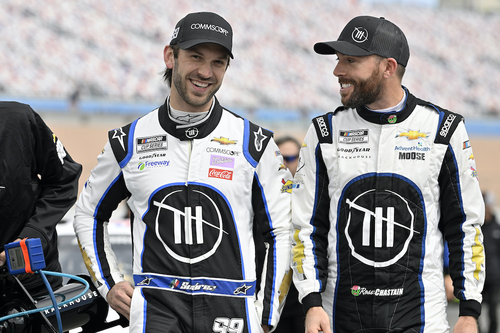 And yet, Marks also admitted the last two weeks were a little tough on the company. While it’s easy to see the positives, don’t forget that while Suarez was shining in Fontana, Chastain, who had wrecked his primary car in practice, spun in the race and struggled to a 29th-place finish. In Vegas, as Chastain racked up the most laps led, Suarez had an early exit when he was tagged in the right rear by Chase Briscoe and sent crashing off Turn 4.