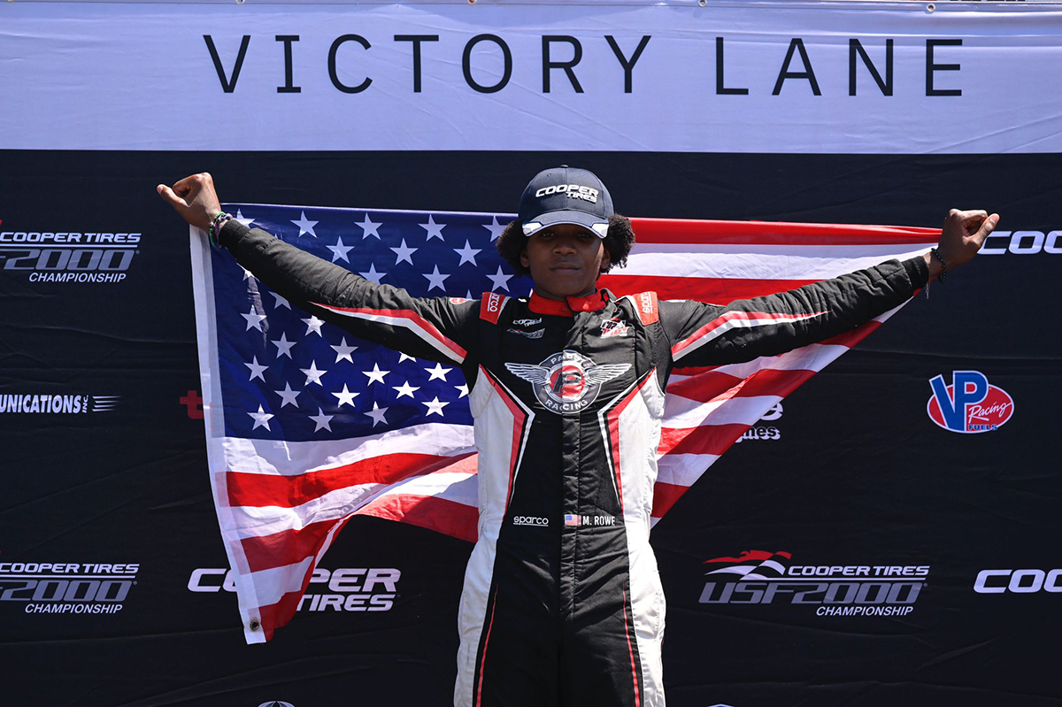 Myles Rowe was picture perfect Saturday afternoon as the Atlanta native romped to his fifth Cooper Tires USF2000 win of the year. Rowe extended his championship points lead with his seventh consecutive podium finish and brings his Pabst Racing team another step closer to its first driver’s title in the championship. Crossing the finish line with a comfortable lead of 5.7s, Rowe had little pressure in an all-green flag race on the 1.786-mile circuit.