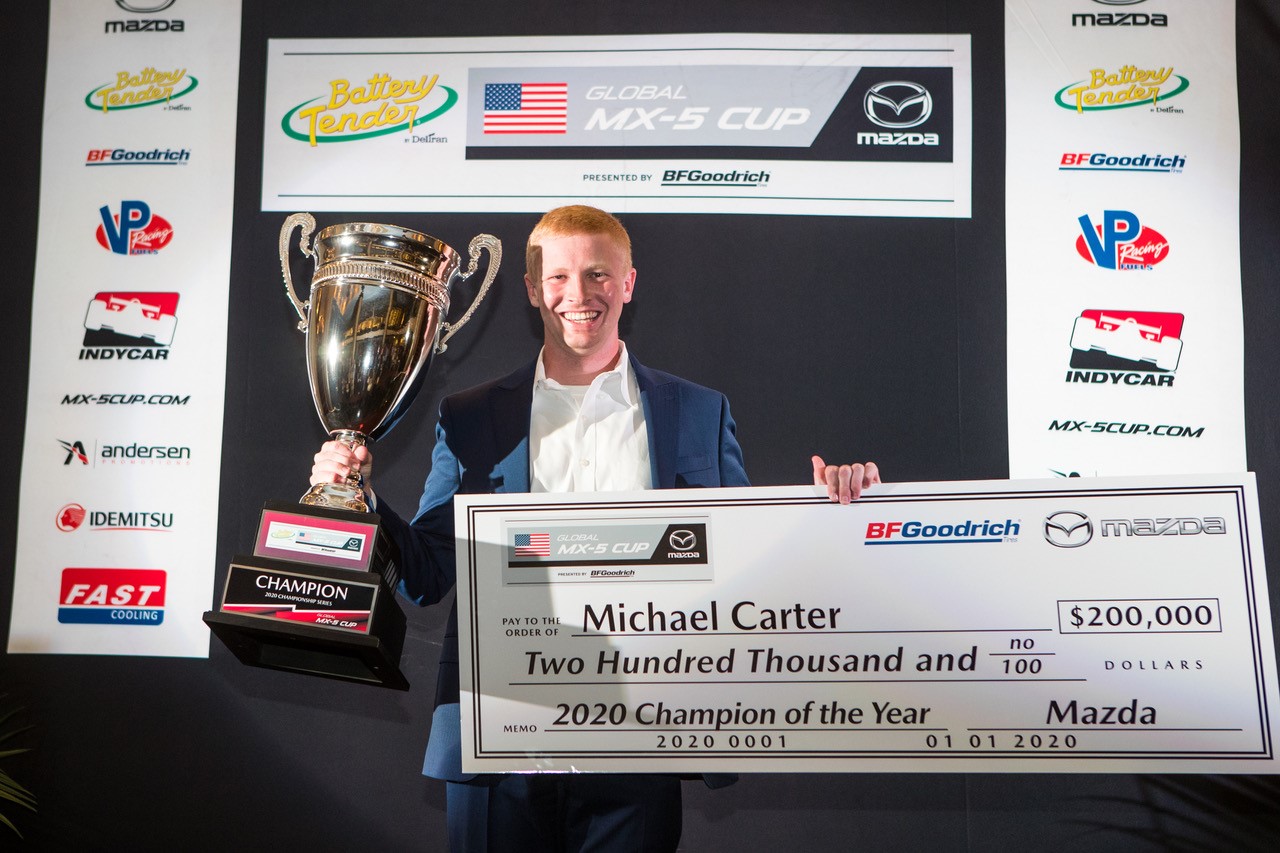Bryan Ortiz celebrates his first motorsports championship in the 2019 MX-5 Cup.
