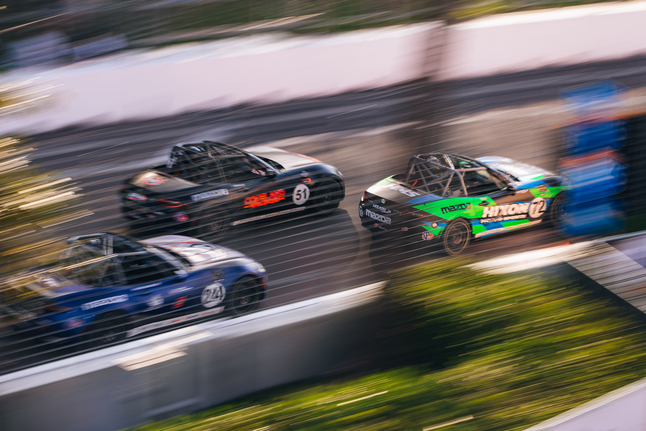 Noaker finished third on the track but was issued a drive-through penalty after the checkered flag for his contact with Wagner. This promoted Alex Bachoura (No. 33 Spark Performance) to third. It was Bachoura’s first-ever MX-5 Cup podium in nearly a decade of competition.