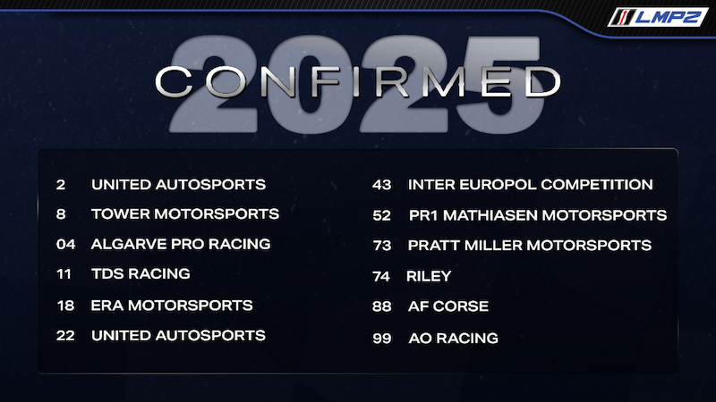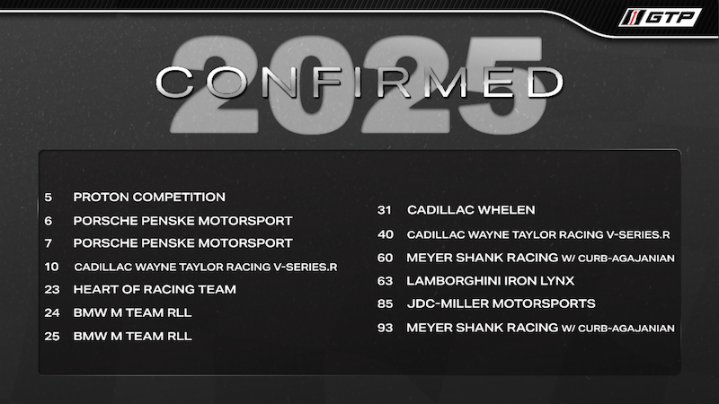 The LMP2 class also sees another increase in 2025 with all 12 of the entries in the class committed for the full WeatherTech Championship season. Pratt Miller Motorsports will be joining the LMP2 field in 2025.