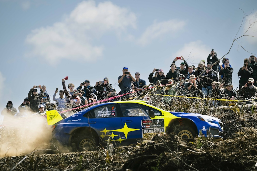 The rally starts Friday, April 17, with a 2:00pm PT Parc Expose at Toyota of Olympia, where fans can see the cars and meet the driversrs. Following a 3:30pm ceremonial start, crews will head straight into action, tackling the Taylor Towne Special Stage before the rally’s first major test, the daunting 18.48-mile Wildcat stage. A service splits two identical loops, with the second run taking place in darkness.