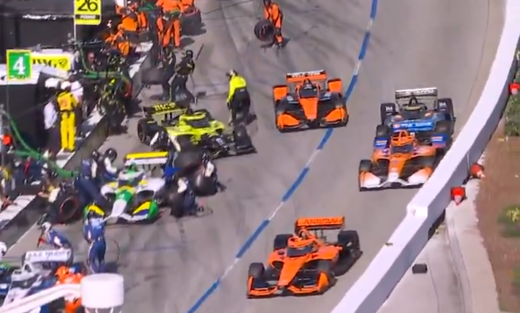 “I feel bad because I clipped the No. 4 crew guy and hurt their race,” Power said of driver Caio Collet’s team member. “It’s tough to go three-wide here, and I don’t think I could have gone any further left. I was at the limit and it just closed up. I didn’t see him at all. You’re focused on the outside lane and what’s ahead, and I must have just caught him.”