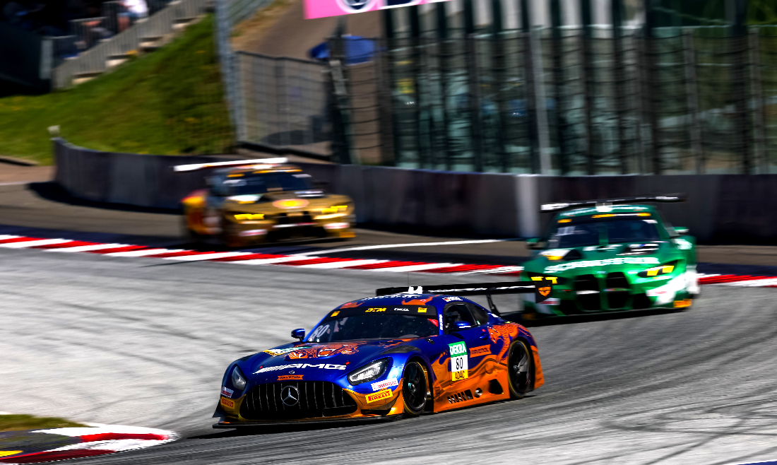 Engel made an impressive start, immediately gaining three positions and slotting into second place behind polesitter van der Linde (Schubert Motorsport). He was followed in third place by fellow Mercedes-AMG driver Auer, with Wittmann down in seventh place in his BMW M4 GT3 Evo at this point. Engel moved into the lead after the first pit stop. Wittmann, who came in very early for his tire change, battled his way into second place after overtaking van der Linde and Auer. Jules Gounon (Mercedes-AMG Team Mann-Filter) followed in fifth.