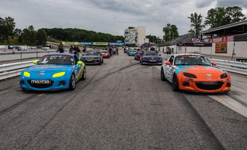 From the drop of the green flag, the battle for podium positions in both the Spec MX (SMX) and Spec Miata (SM) classes was intense. Camden Gruber, driving the No. 24 Planet Miata 2007 Mazda MX-5, and Wes Duchak in the No. 40 Final Turn Motorsports 2006 Mazda MX-5 Miata surged into the top two positions on the opening lap. Meanwhile, Michelle Squirek, in the No. 75 2011 Mazda MX-5, slipped back to third in the fight for the overall and SMX lead.